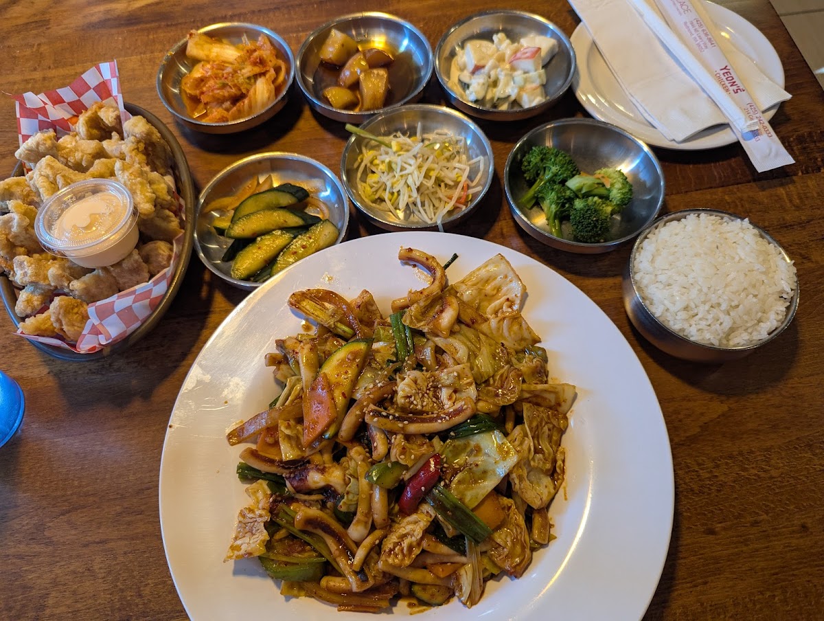 The fried chicken here is so delicate and very flavorful! You can easily consume a lot of chicken without feeling heavy. The spicy pork bulgogi was delicious. Their portions are astounding! You definitely get your money's worth. Service is excellent.