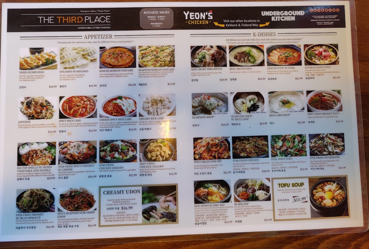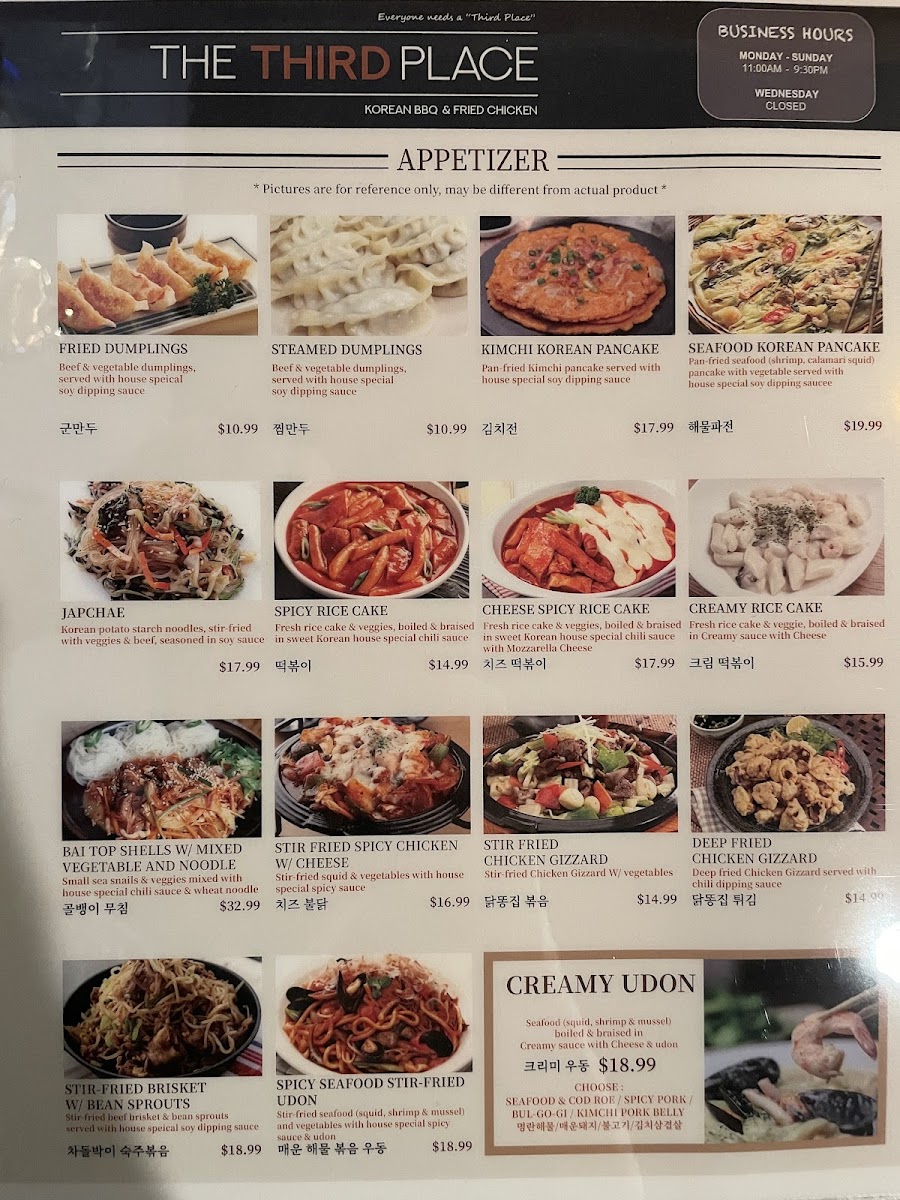 The Third Place offers a thoughtfully curated menu that blends Korean traditional flavors with approachable, satisfying dishes perfect for casual dining or takeaway. The menu leans into comforting, hearty meals alongside shareable fried chicken options, making it a great spot for both a laid-back lunch or a relaxed evening meal with friends or family.