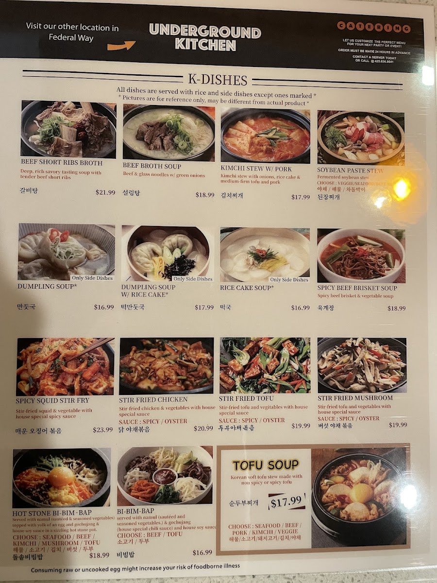 Guests can expect an inviting mix of classic Korean staples like Hot Stone Bi-Bim-Bap and Beef Bulgogi Dosirak alongside house specialties such as the Half and Half Fried Chicken and Yangum Chicken Kalbi. Side dishes like banchan and warming soups including Soft Tofu Soup and Kimchi Stew round out the experience, offering a comforting balance of flavors and textures.